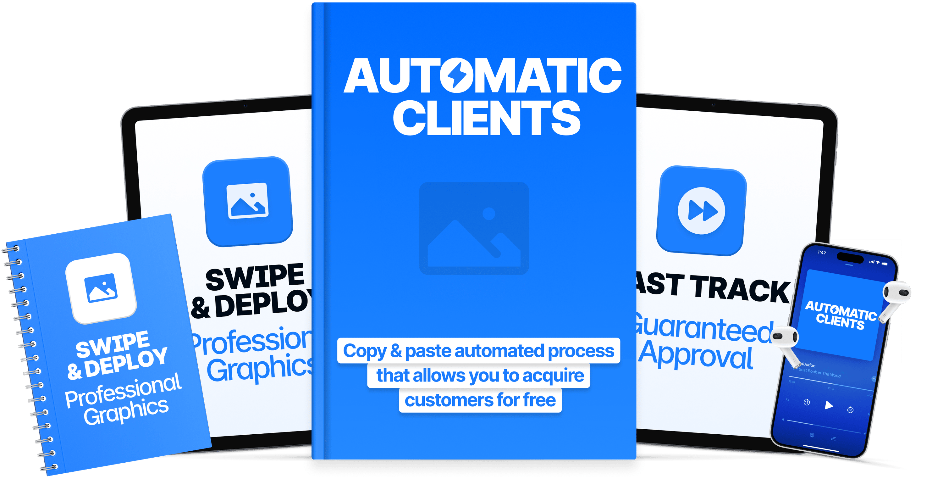 [INSERT ANSWER] You are getting a copy of the Automatic Clients ebook, available instantly. You are getting the highly praised 6+ hour Advanced Acquisition Theory course. You are getting our advanced Economics Calculator. You are getting our 2,854 Profitable Niches spreadsheet. You’re getting the 7-Day Fast Start video series, our best $200,000 Advertisement, access to our FB community, our 7-Figure Video Sales Letter script, and a 26-step Launch Checklist.